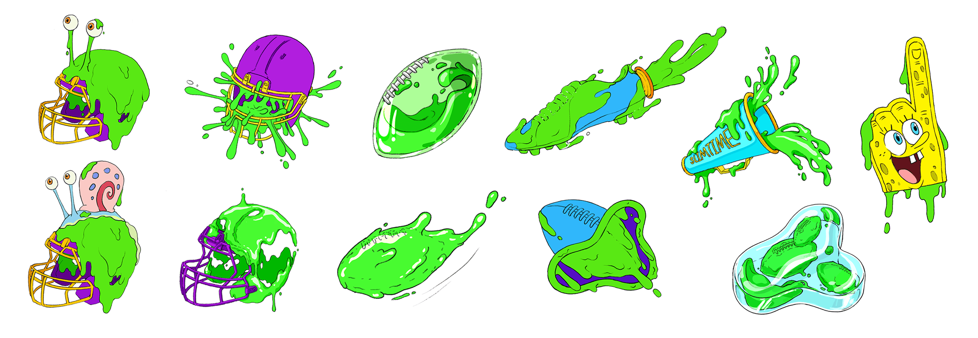 Show icons blend football and Nickelodeon elements, adding visual interest while reinforcing the show’s playful identity.