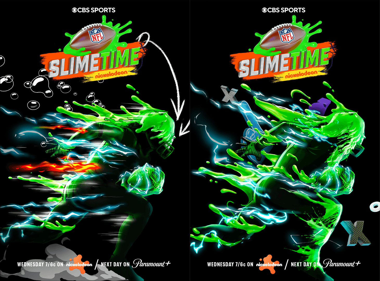 NFL Slime Time is Nickelodeon’s kid-friendly NFL highlights show that blends real game footage with playful graphics and the brand’s signature slime aesthetic.
